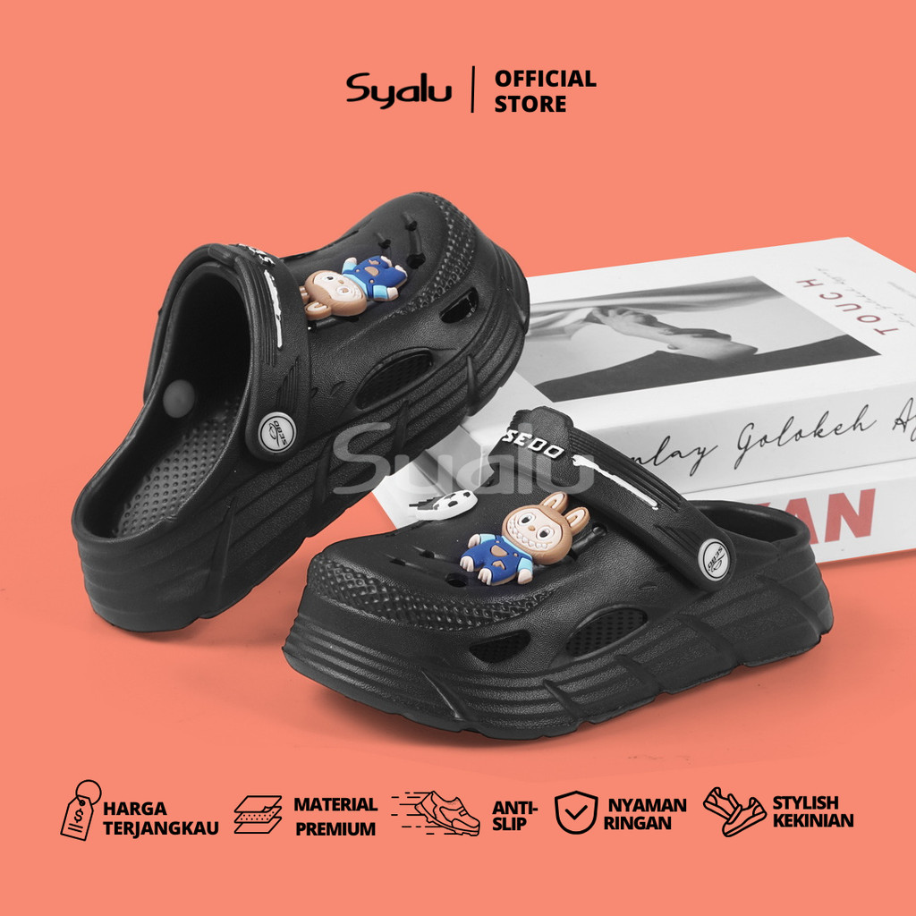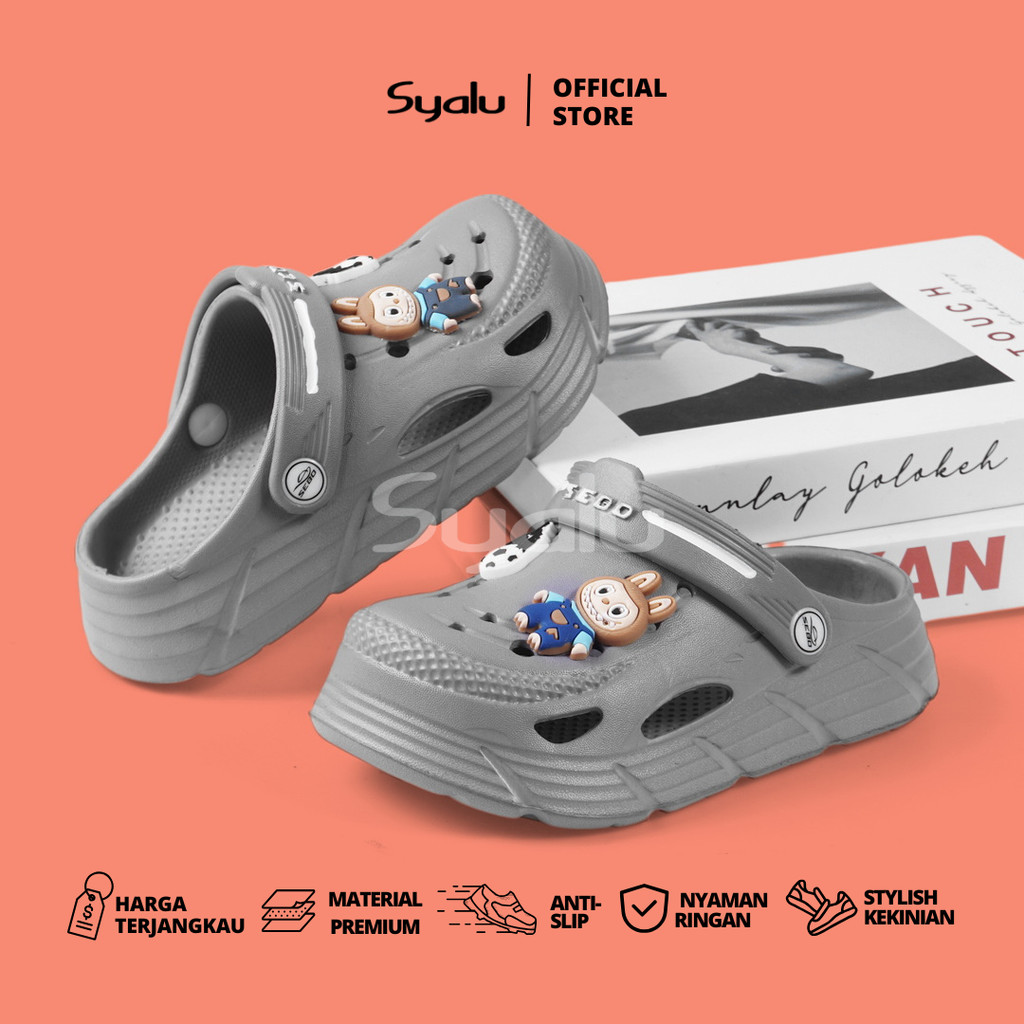 Sandal Baim Anak Laki Laki Karet Empuk Tali Belakang Jibbitz Labubu Naka