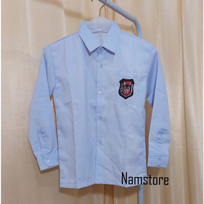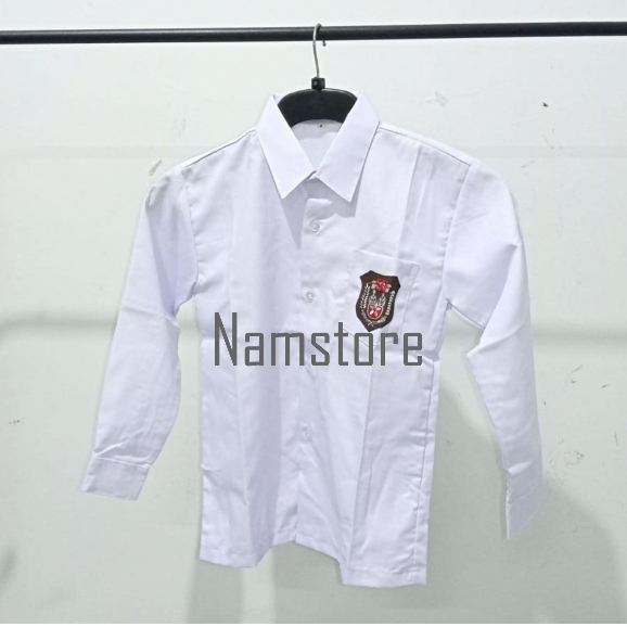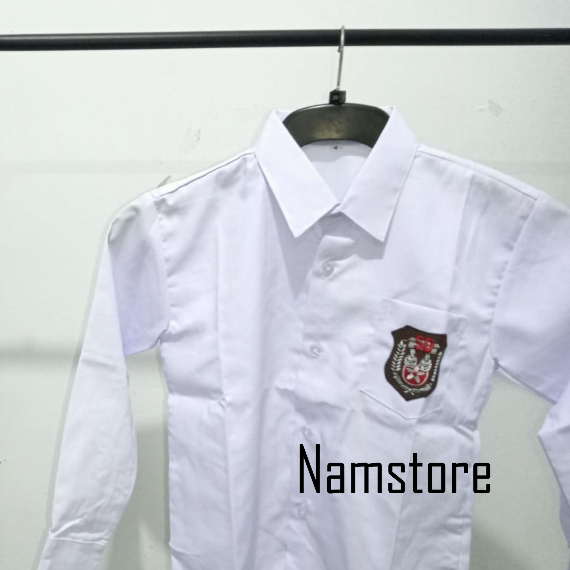 Baju Putih SD Lengan Panjang Seragam Sekolah Kain Oxford dan Kain Licin Logo Bordir