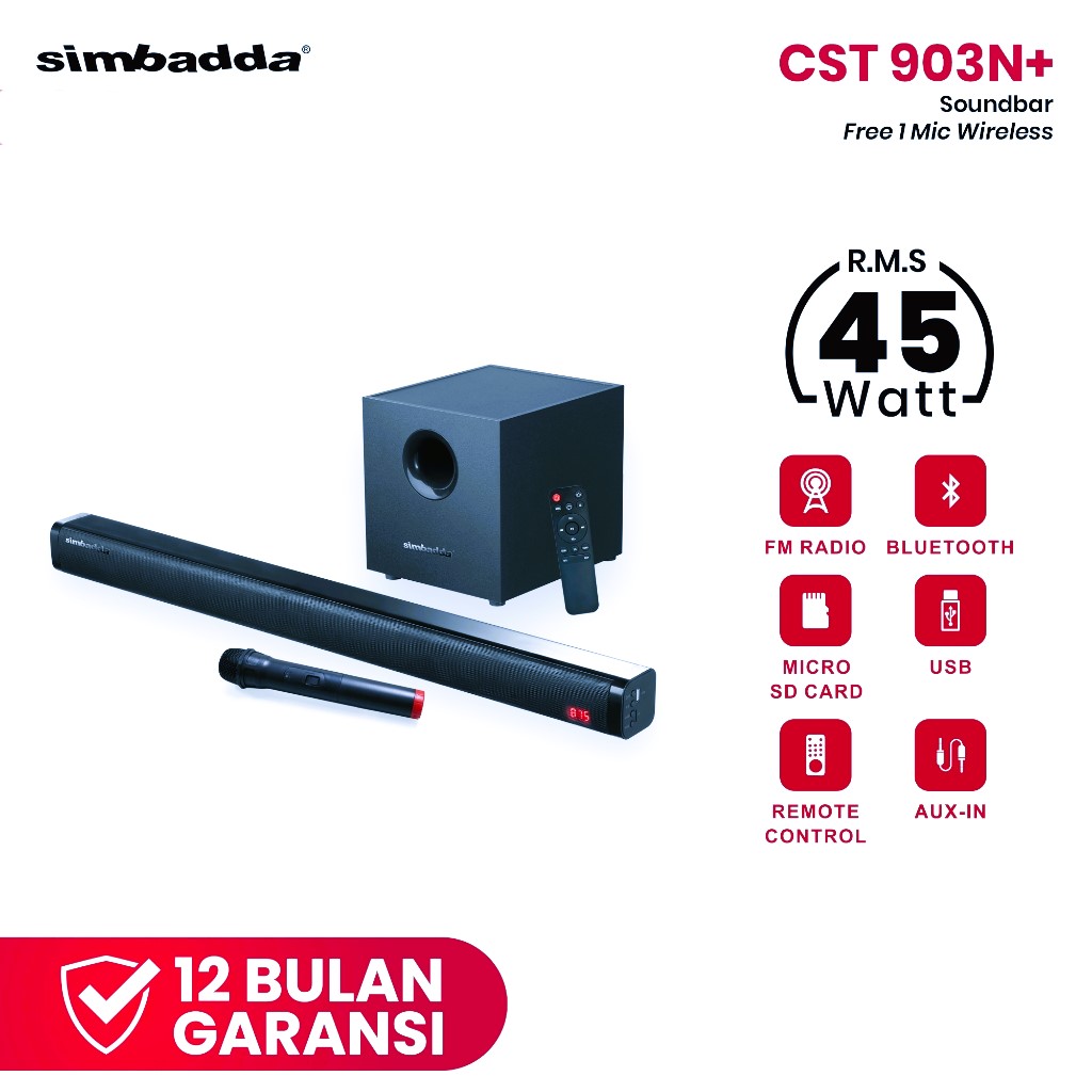 Simbadda CST 903N+ | Soundbar TV Home Cinema System 45W RMS Bluetooth Wireless Mic Karaoke | Speaker sound subwoofer
