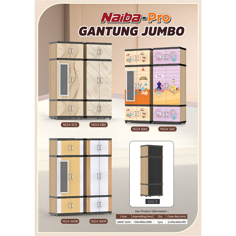 NAIBA PRO Lemari Plastik Serbaguna GANTUNG JUMBO KACA CERMIN Rak KUNCI 1624