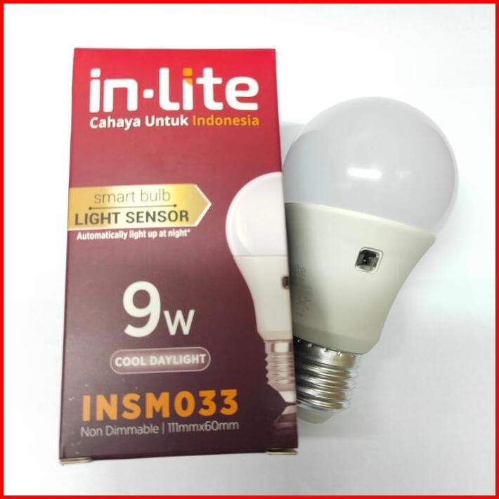 Inlite Lampu Led Bulb Light Sensor Cahaya Insm033 9w 9watt 6500k