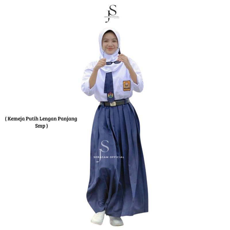 Stelan Seragam Sekolah Smp - Kemeja Smp - Seragam Smp Lengan Panjang - Rok Rempel Smp