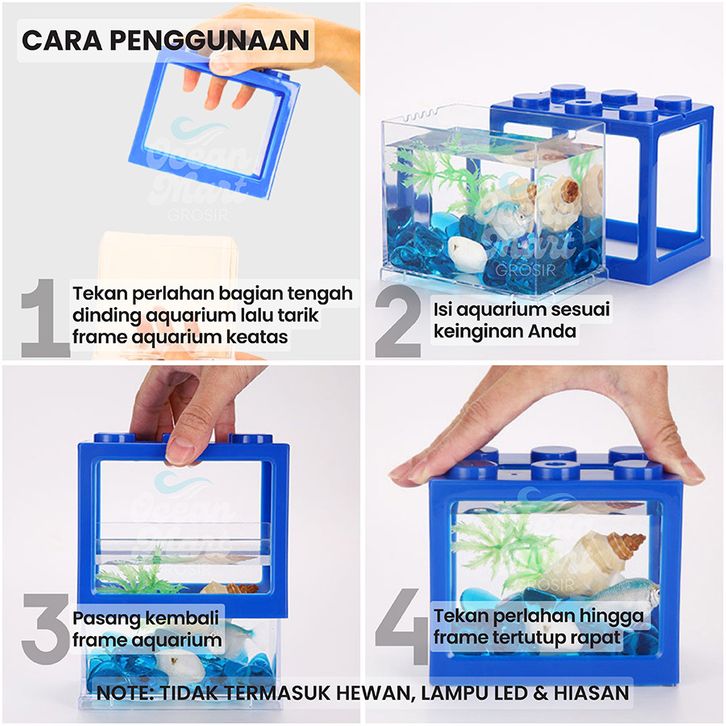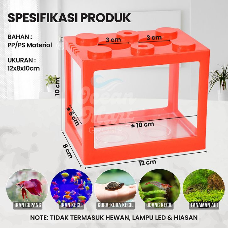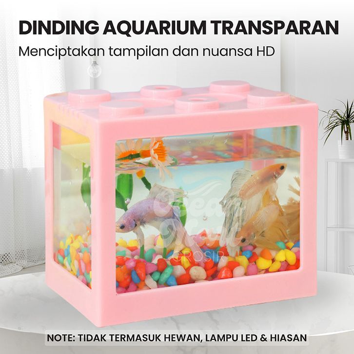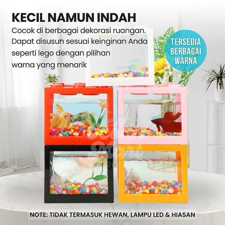 GROSIR Soliter Lego Mini Akrilik Susun Aquarium Tempat Kandang Kaca Kecil Akuarium Ikan Guppy Cupang Emas Hias