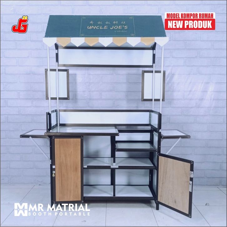 Gerobak Jualan Aluminium Booth Portable Atap Rumah Komplit Kompor Tulang Hitam Gerobak Jualan Meja lipat