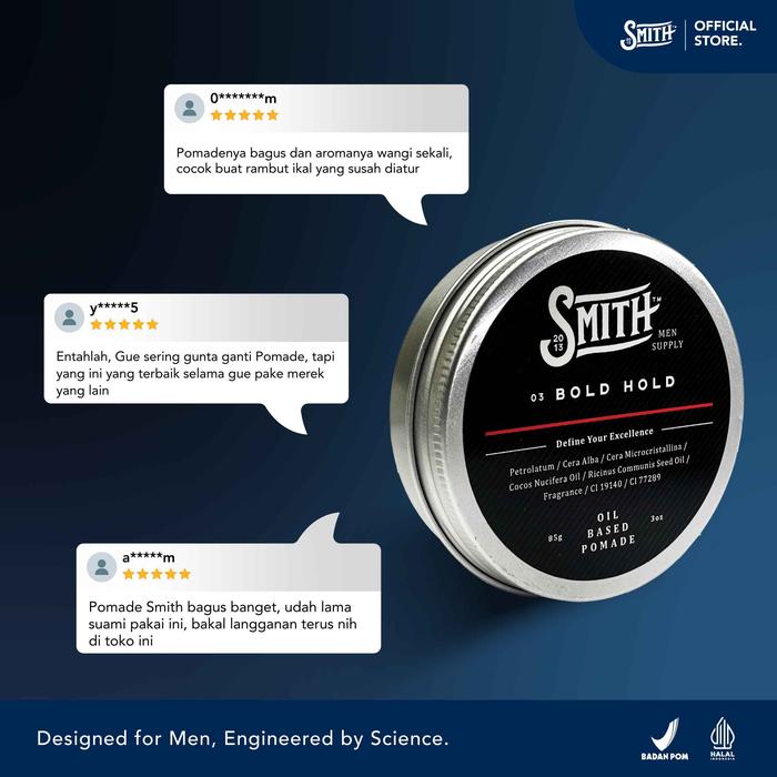 SMITH - Bold Hold Hair Pomade Oil Based 85gr / Minyak Rambut Pria / Aroma Vanila
