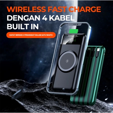 Wireless Powerbank 20000mAh Built in Cable Kompatibel dengan semua ponsel Fast Charging Kabel bawaan Type-C Micro USB iO