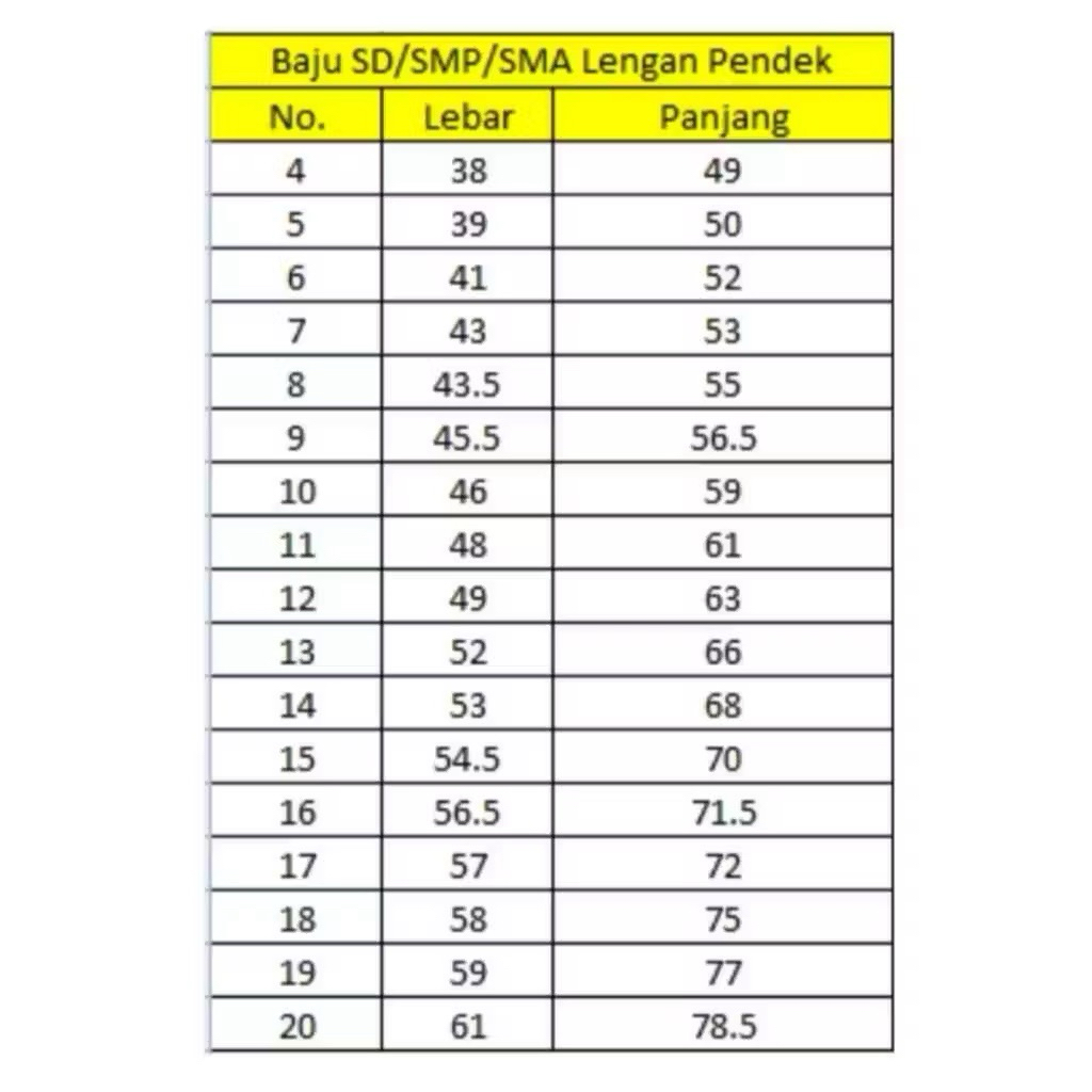 SERAGAM SEKOLAH | KEMEJA PUTIH BET SD/SMP/SMA LENGAN PENDEK