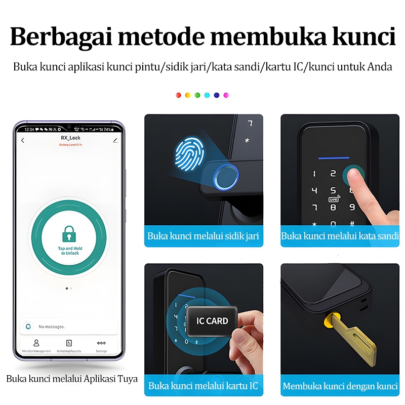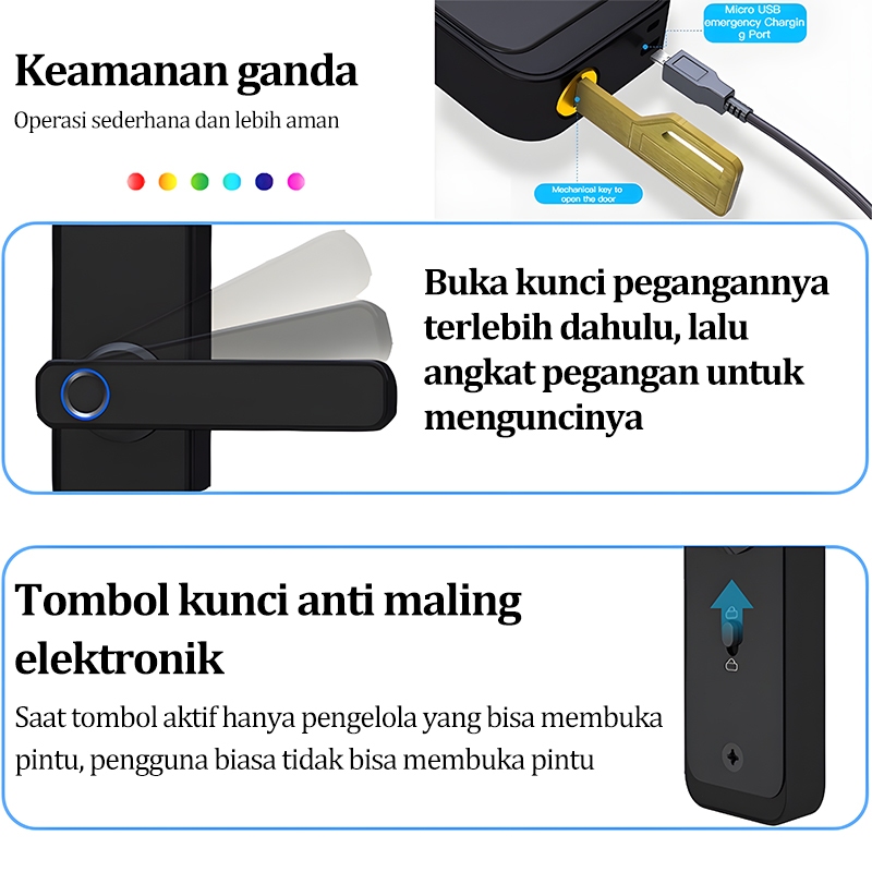 KUNCI PINTU RUMAH SMART DOOR LOCK DIGITAL SIDIK JARI GAGANG PINTU KAMAR SET LENGKAP A-Z13