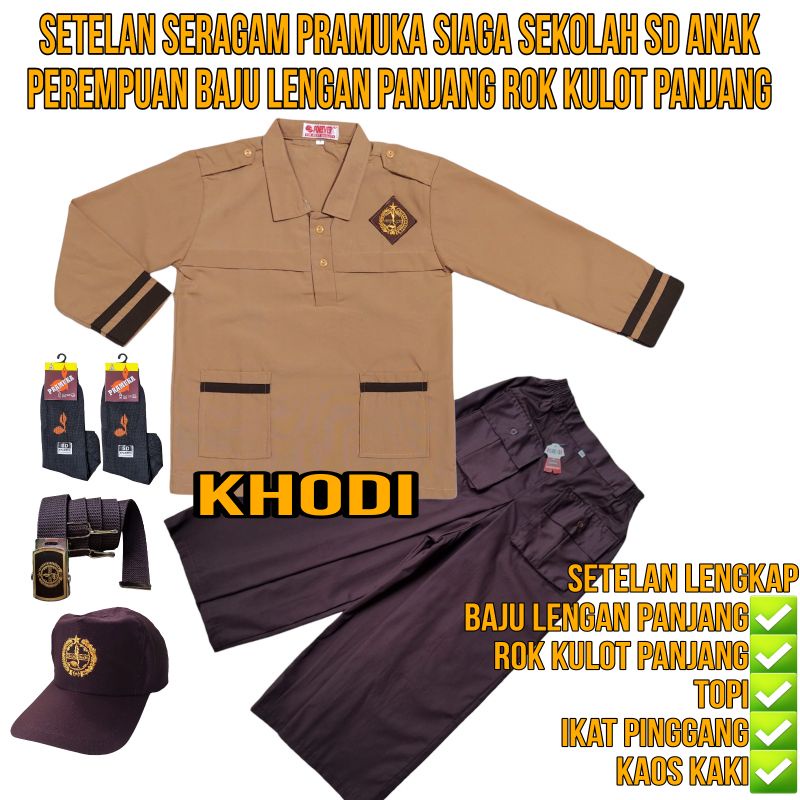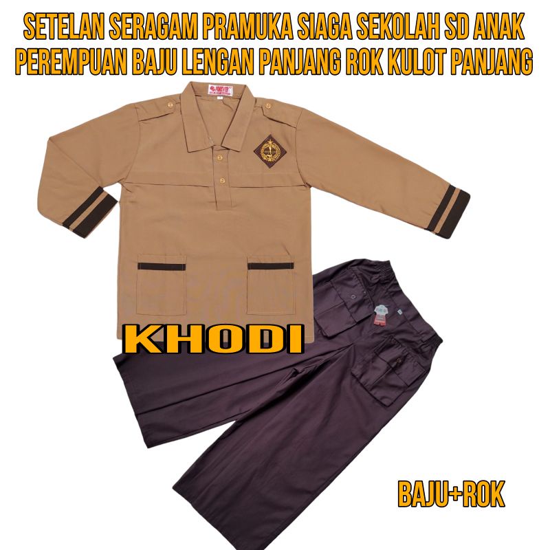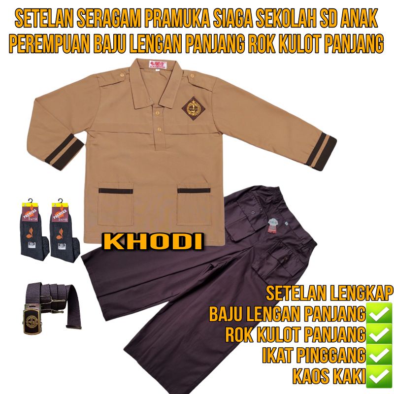 Setelan seragam pramuka sekolah SD anak perempuan pramuka siaga lengan Panjang rok kulot panjang pakaian sekolah SD