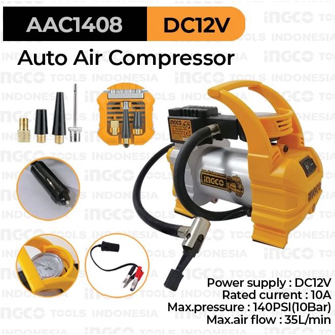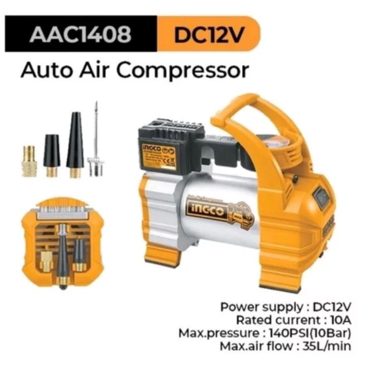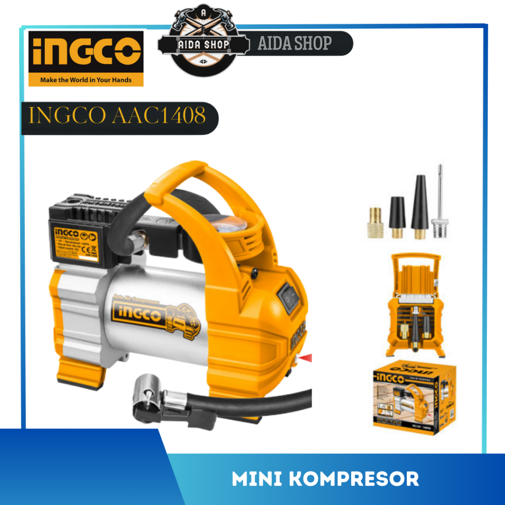 MESIN KOMPRESOR MINI OTOMATIS INGCO AAC1408 AUTO MINI AIR COMPRESSOR INGCO AAC 1408 POMPA ANGIN BAN MOBIL MOTOR DC 12V K