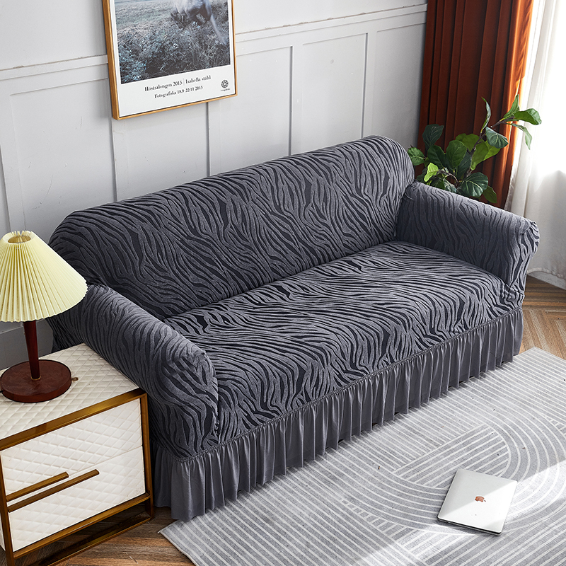 Sofa Cover Skirt Jacquard Sarung Tutup Sofa Renda Elastis Motif Strecth Murah
