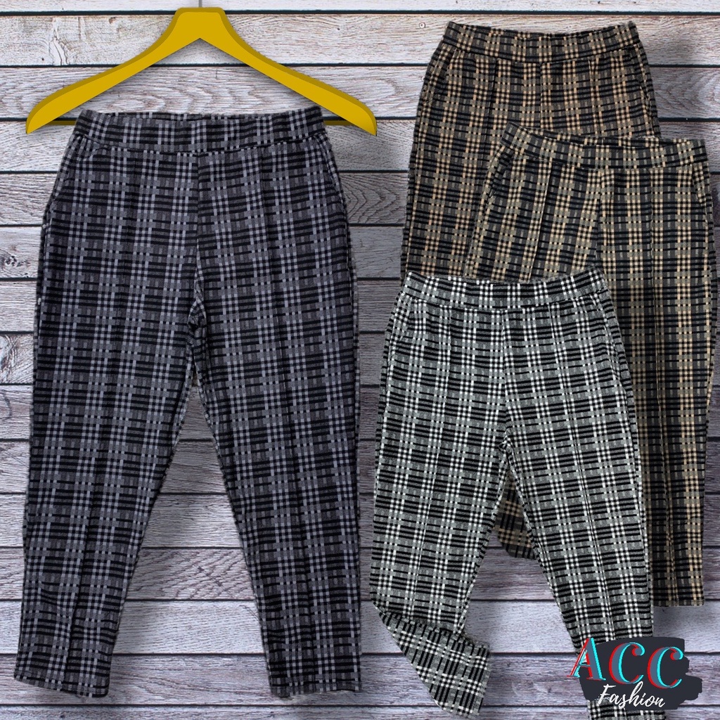 CELANA KOTAK KOTAK CEWEK CELANA PANJANG JUMBO BIG SIZE CELANA KAIN BAHAN MELAR TARTAN PANTS BAGGY JUMBO STRIT ALL SIZE