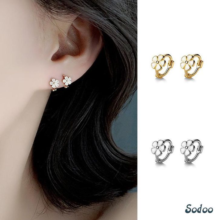 S925 Silver Retro Daisy Earrings Anting Hoop Sederhana Desain Niche Gesper Telinga - SO