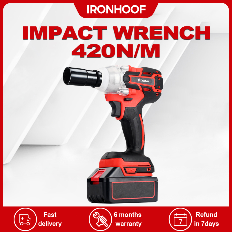 IRONHOOF Impact Wrench Brushless 420N.M Mesin Bor Baterai Impact Baterai 24V