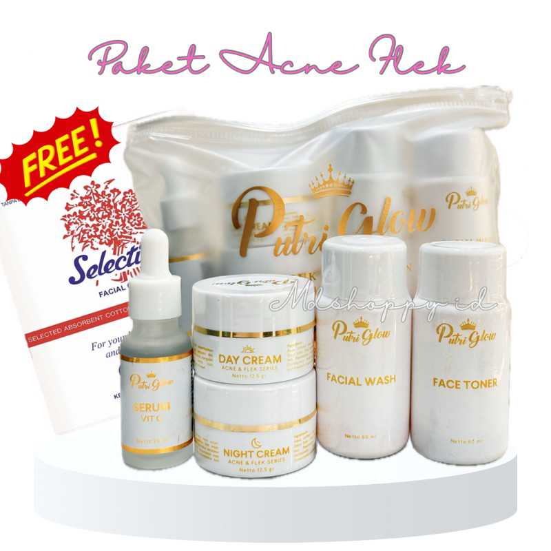 SKINCARE WANITA GLOWING BPOM PUTRI GLOW PAKET ACNE & FLEK FREE KAPAS ORIGINAL