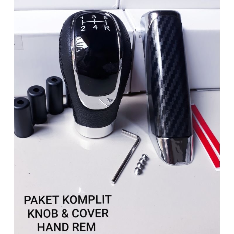 Paket Komplit Knob Persneling Mobil Manual 5 Speed & Cover Rem - Hitam