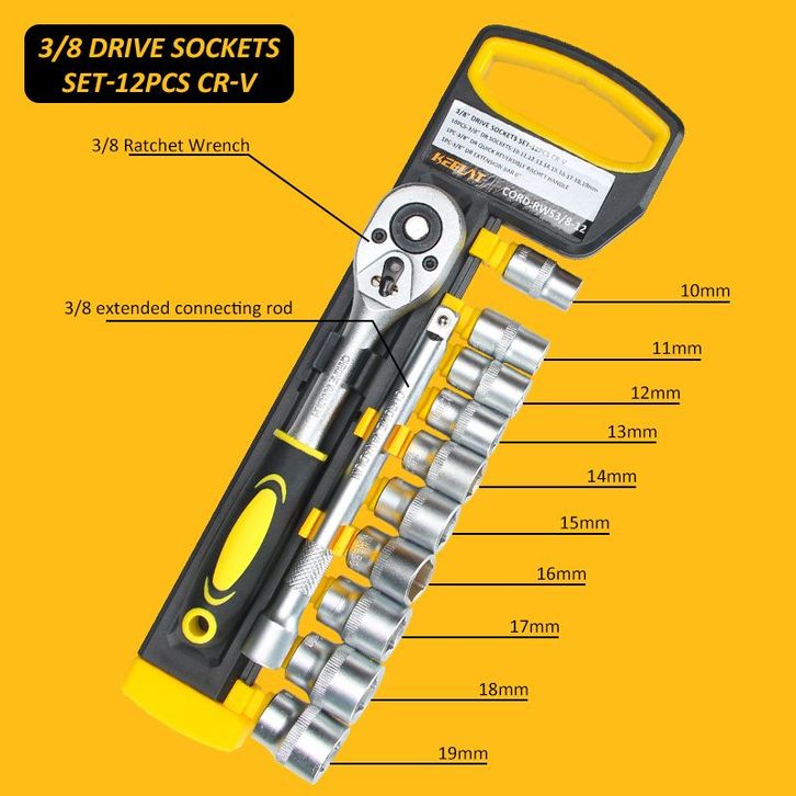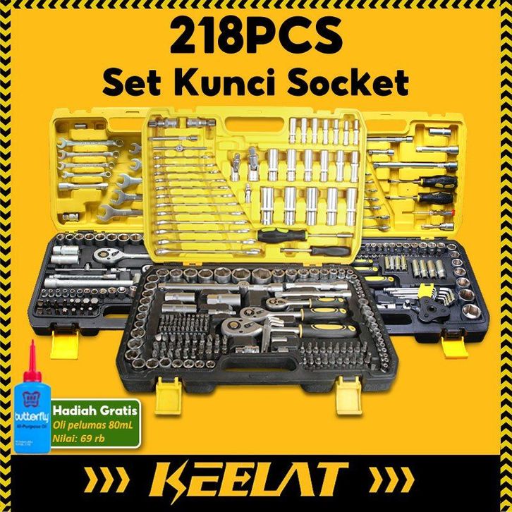 KEELAT 218PCS 1/2'' Kunci Socket Set【60HRC】CR-V Socket Full Lengkap Socket Tool Kit Motor Kunci Socket 61pcs 3/8 Inch Wr
