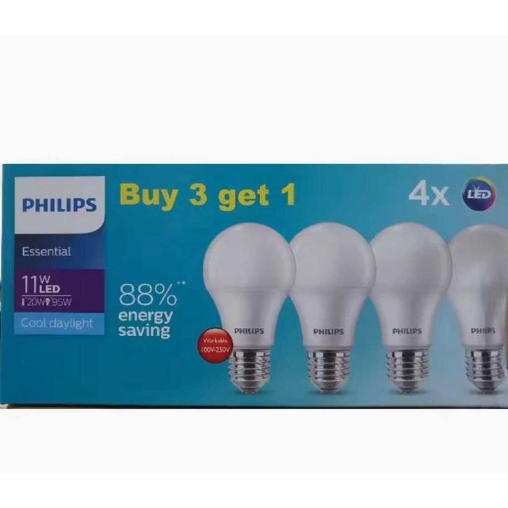 PROMO [Promo Isi 4] Philips LED Essential Putih 11 Watt Multipack (Biru) ubohd