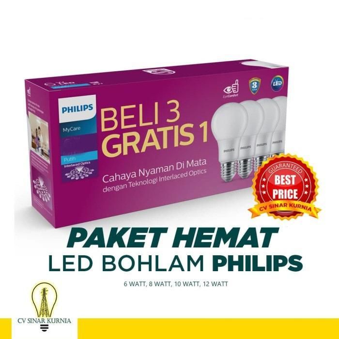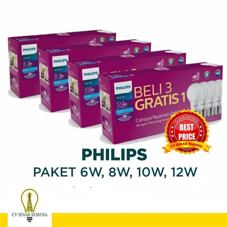 ORIGINAL Lampu Bohlam LED Philips 6W, 8W, 10W, 12W (1 paket isi 4) MyCare Garansi Resmi ehebf