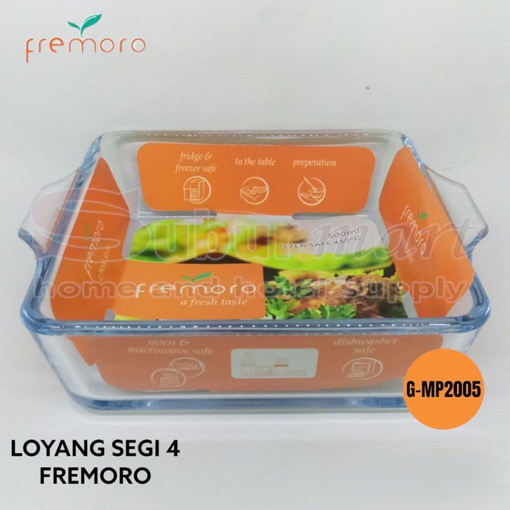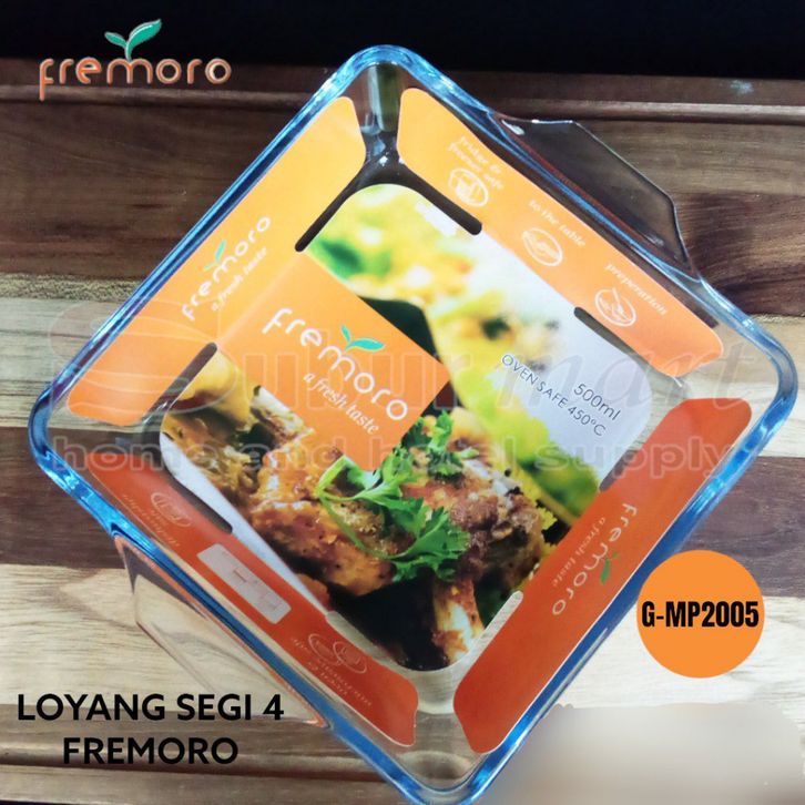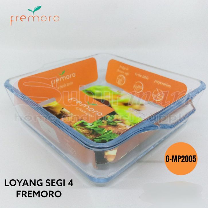 alat bikin kue cetakan loyang termurah FREMORO LOYANG KACA BOROSILICATE SEGI 4 GAGANG / BAKING GLASSWARE