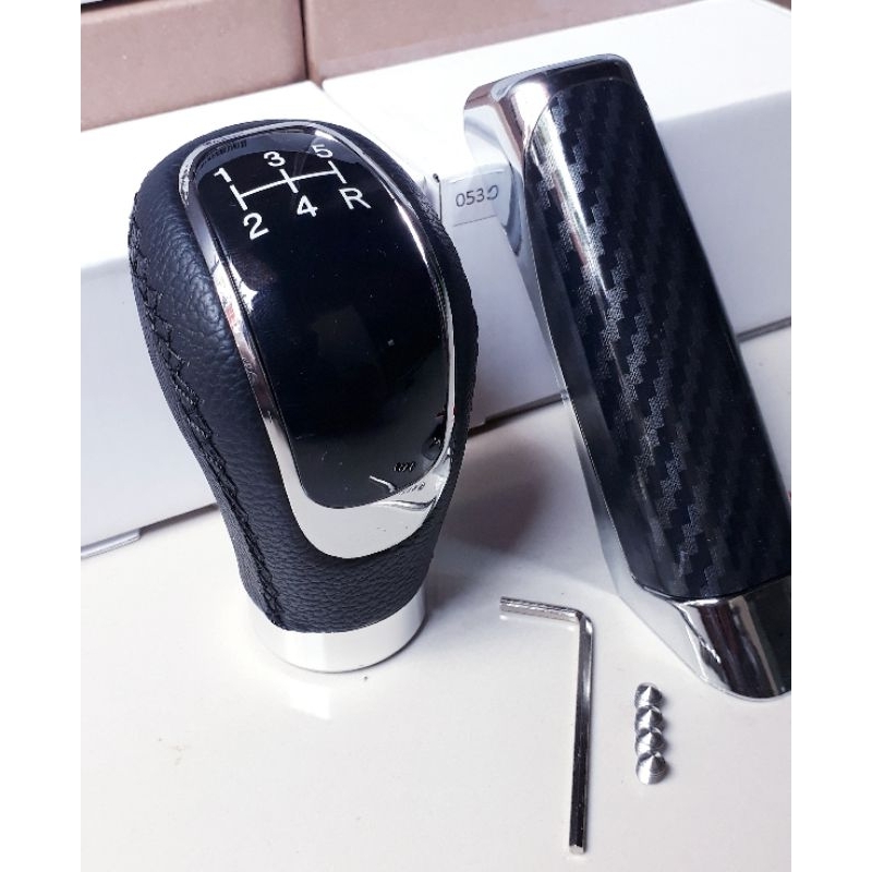 Paket Komplit Knob Persneling Mobil Manual 5 Speed & Cover Rem - Hitam