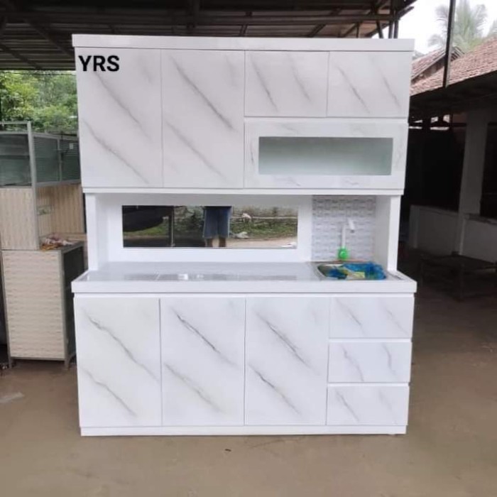 Lemari Sayur 4 Pintu Wastafel Hidrolik Motif Marmer YRS
