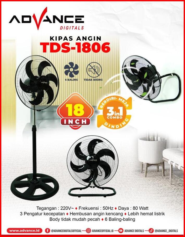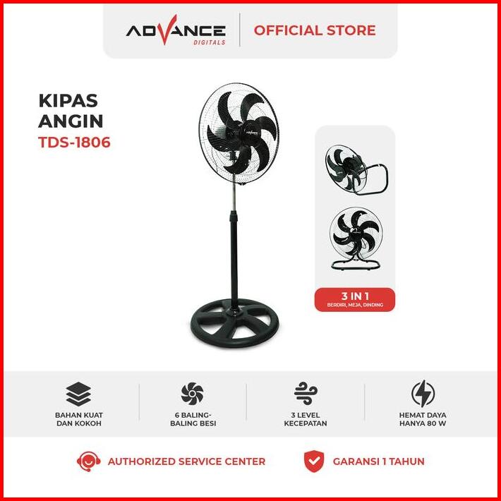 Kipas Angin Advance Tds-1806 Kipas Angin Besi Tds1806 Ukuran 18 Inch 3 In 1 Berdiri Meja Dinding 6 Baling