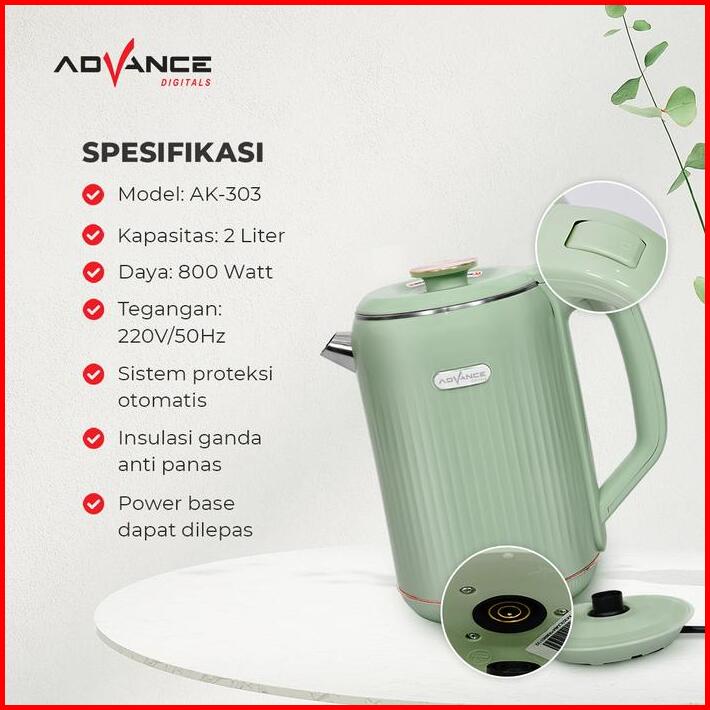 Teko Listrik Advance Ak-303 Kapasitas 2l Electric Kettle 800 Watt Garansi Resmi 1 Tahun