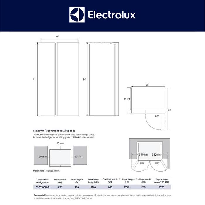 ELECTROLUX ESE5100BB (SBS) Kulkas Side by side 505L Multidoor - Khusus Jabotabek