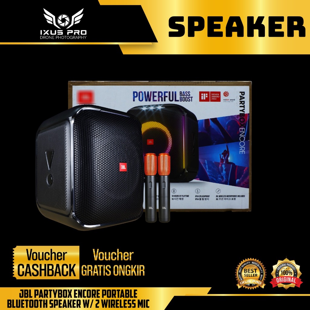 JBL PARTYBOX ENCORE PORTABLE BLUETOOTH SPEAKER W/ 2 WIRELESS MIC