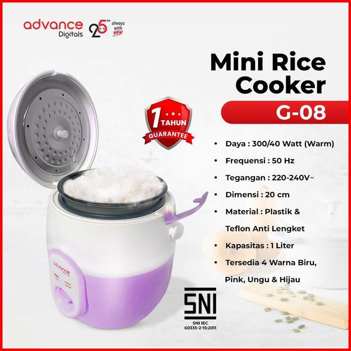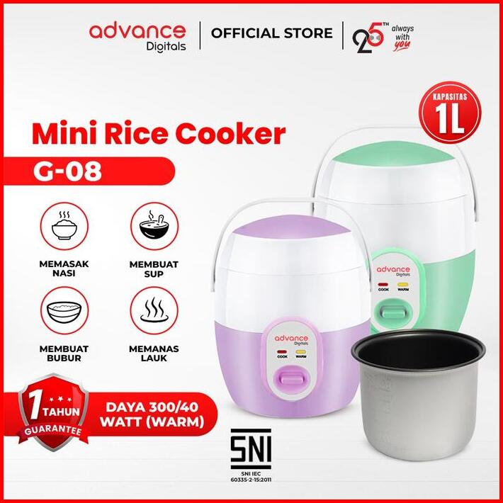 Advance G-08 Rice Cooker Mini Travel 0.8 Liter Anti Lengket 200 Watt Garansi Resmi Advance 1 Tahun