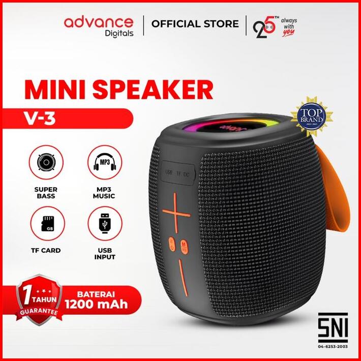 Advance V3 Mini Speaker Portable Bluetooth 3 Inch Suara Jernih Garansi Resmi 1 Tahun