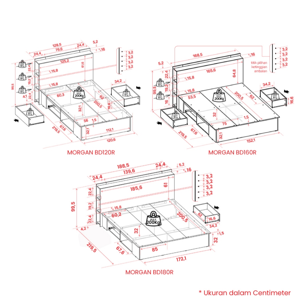 [Star] Pira - Samara BD160 Dipan / Ranjang / Tempat Tidur dengan Laci Penyimpanan dan LED