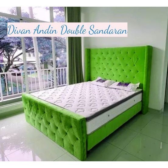 Divan / Difan Kasur Sandaran Andin T170 Double Sandaran Kain Bludru
