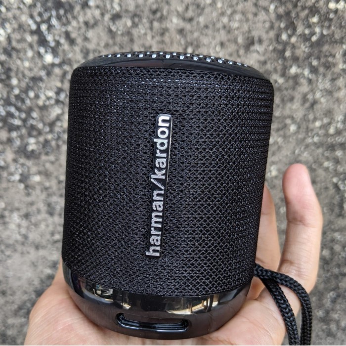 TERLARIS SPEAKER HARMAN KARDON TABUNG MINI 9CM WIRELESS RADIO BISA DI GANTUNG DIMOTOR BATRAI TAHAN 3-4 JAM AWET - HITAM
