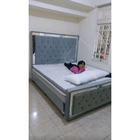 Divan sandaran list cermin bahan beludru tanpa kasur