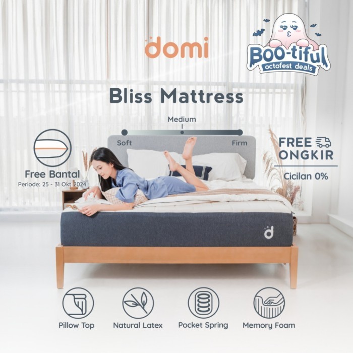 Domi Bliss Mattress 30cm - Kasur Pocket Spring Latex Pillow Top / Memory Foam / Super Soft Bamboo Cover