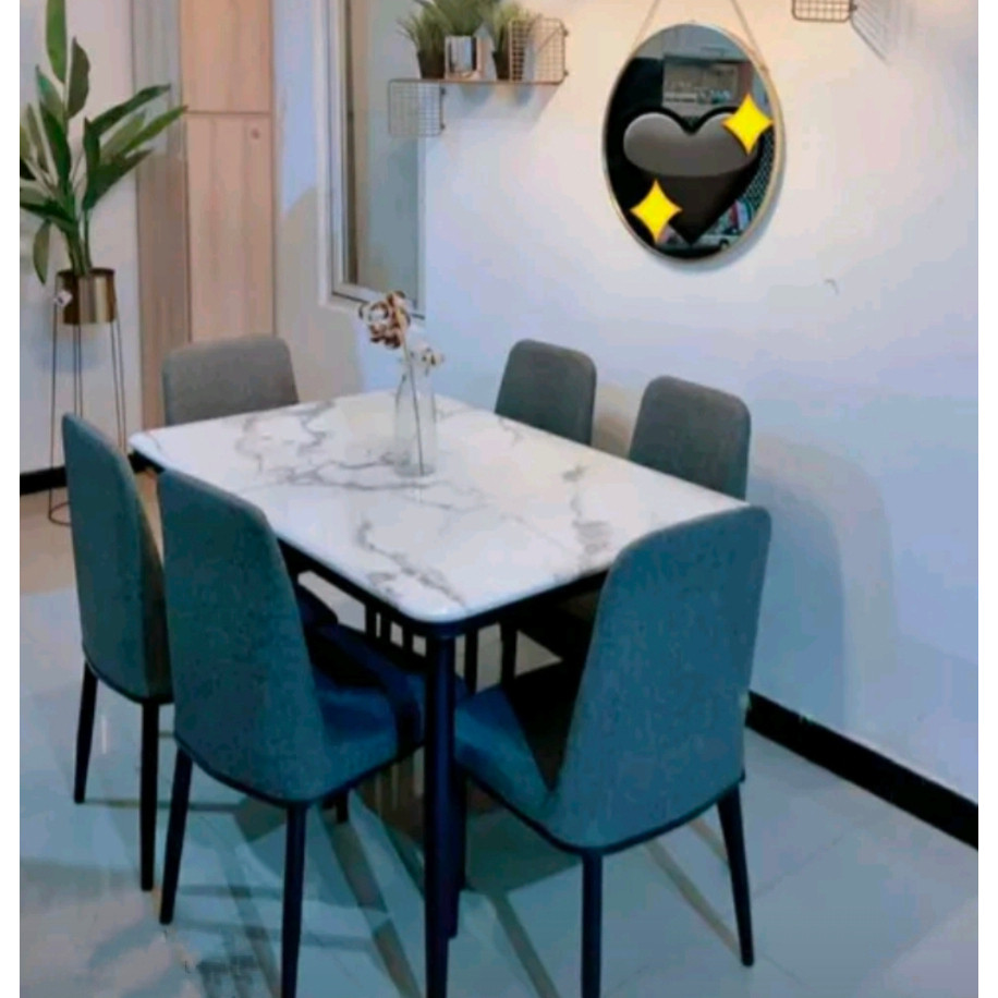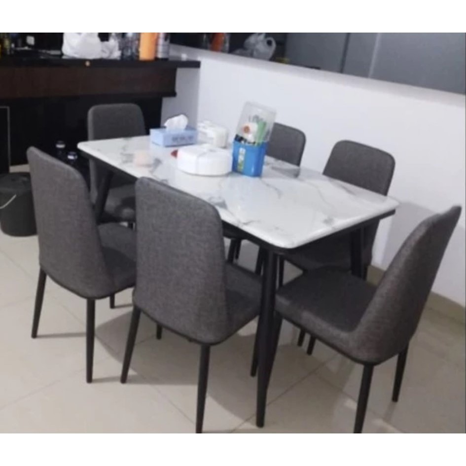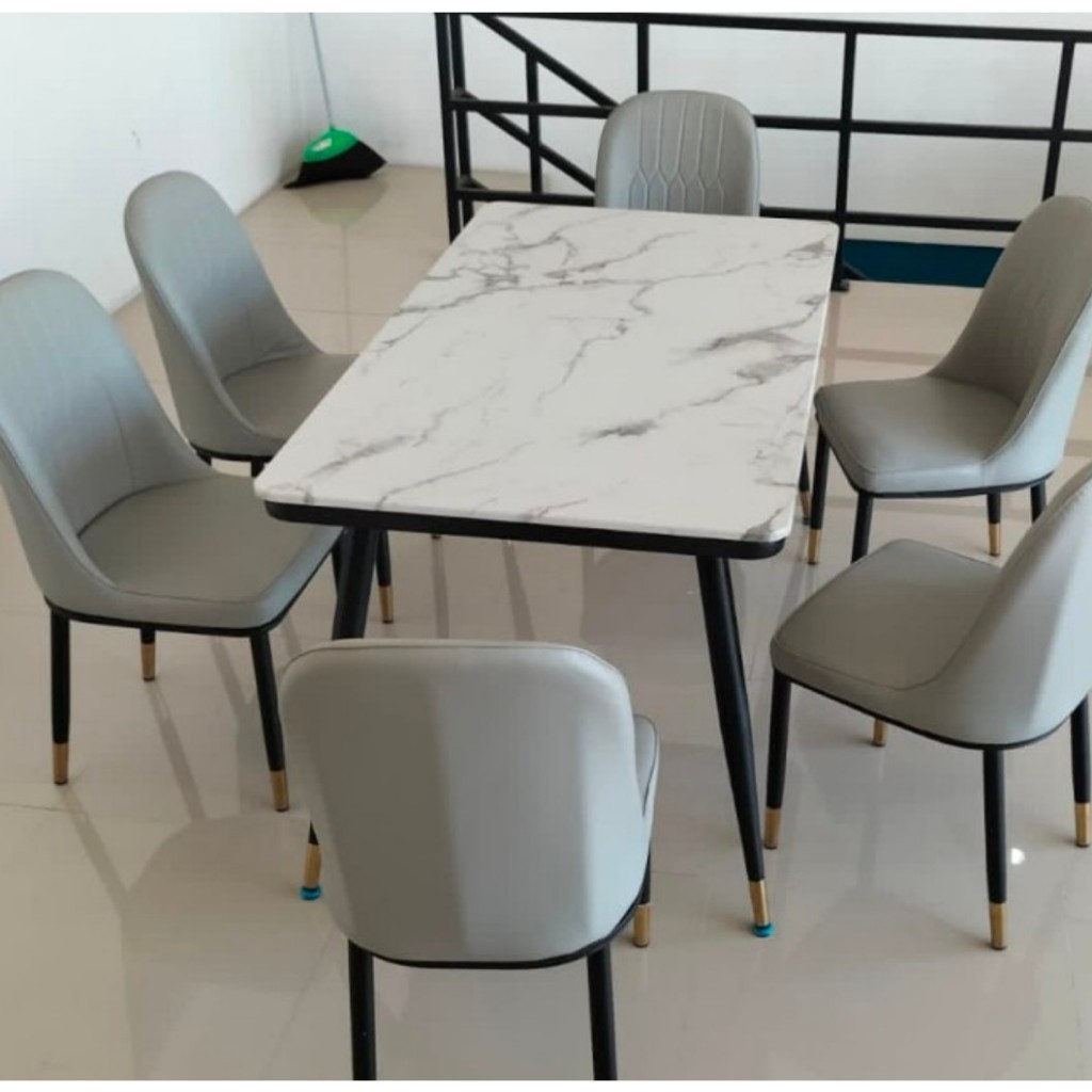 Set Meja Makan Sintered Stone Meja + 6 Kursi STARLEAD