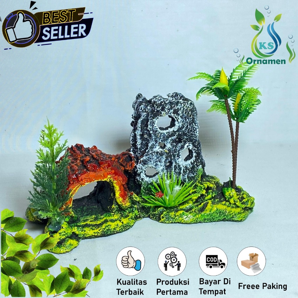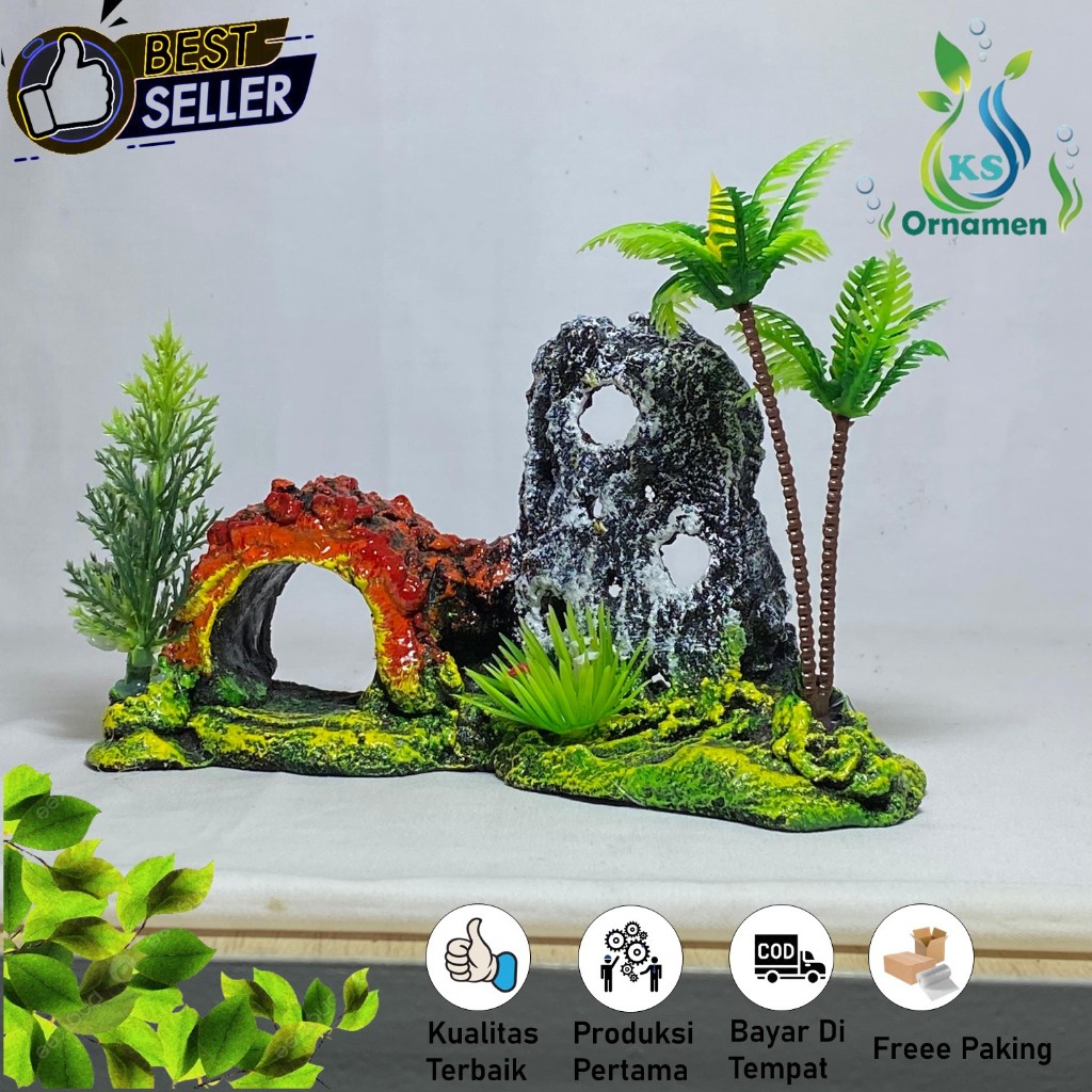 Hiasan Aquarium Terowongan kayu l Hiasan Akuarium Ornamen Pohon rumah ikan Berdiri