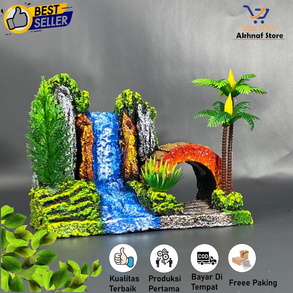 Hiasan Aquarium Terowongan Tebing Air Terjun Kelapa aquascape