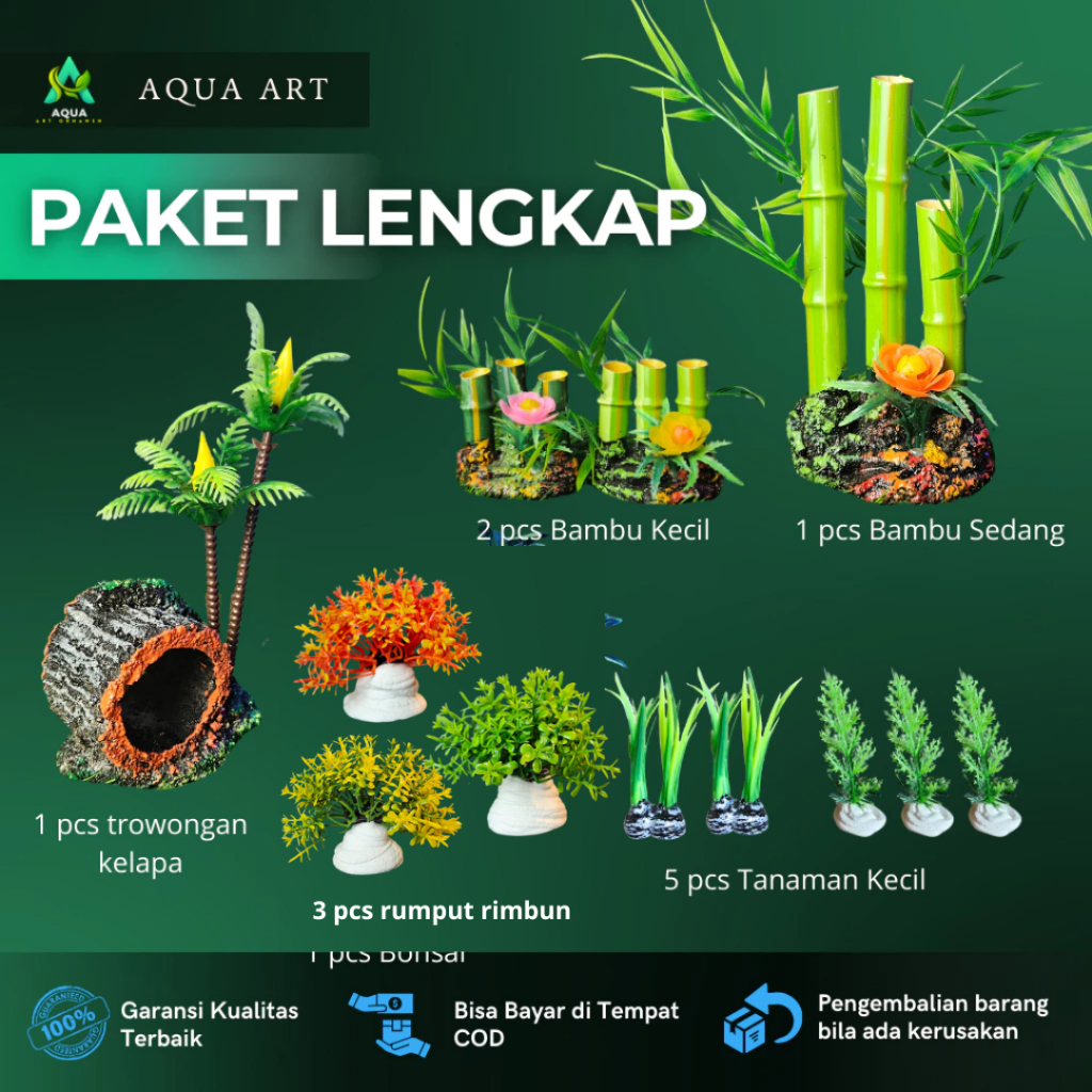 Paket Lengkap hemat Hiasan Akuarium dapat 10 pcs Bonsai Bambu Artificial