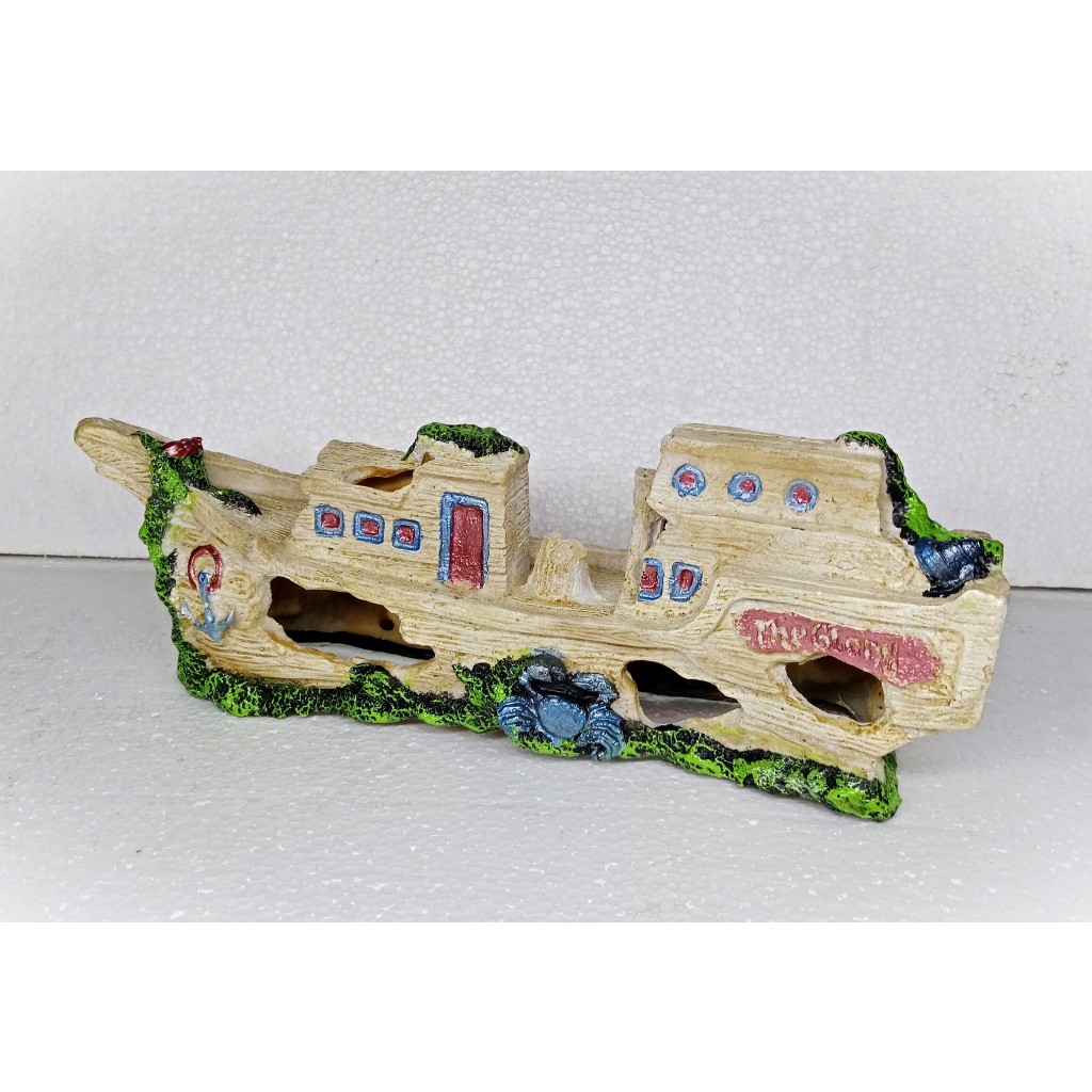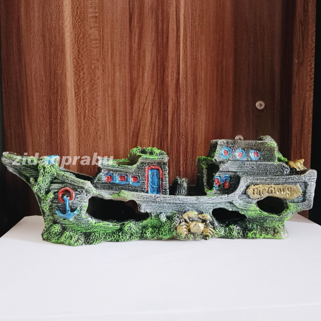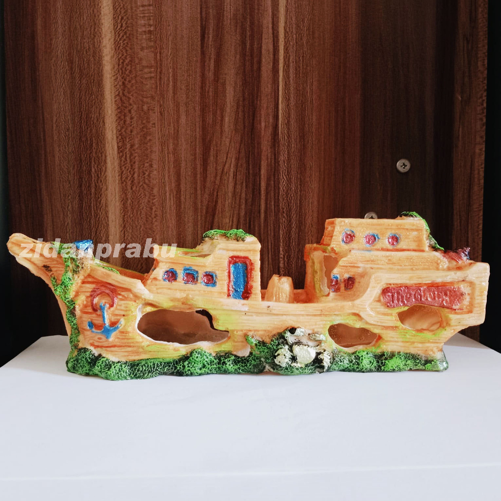 Hiasan Aquarium Fiber Kapal Panjang 29x7x11cm