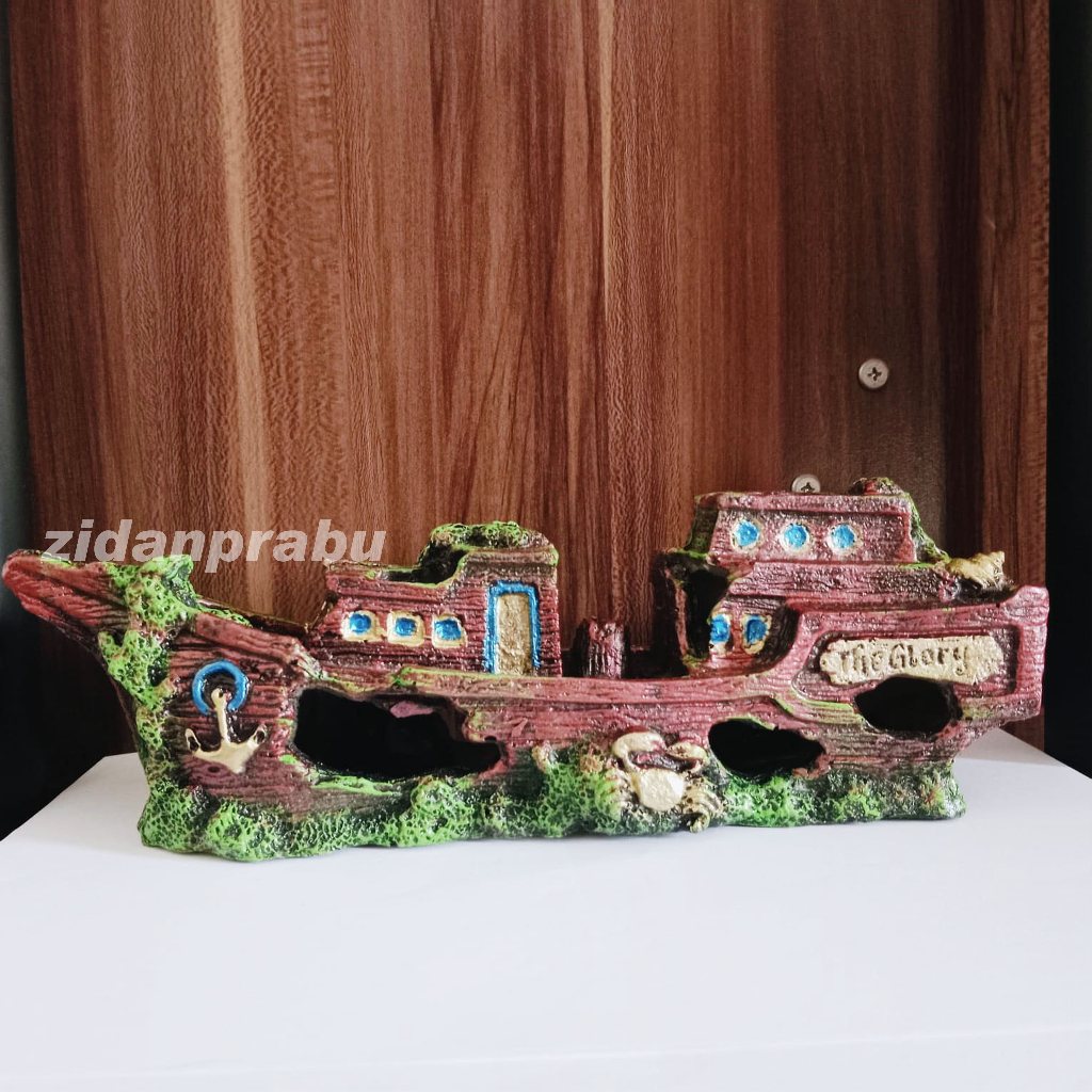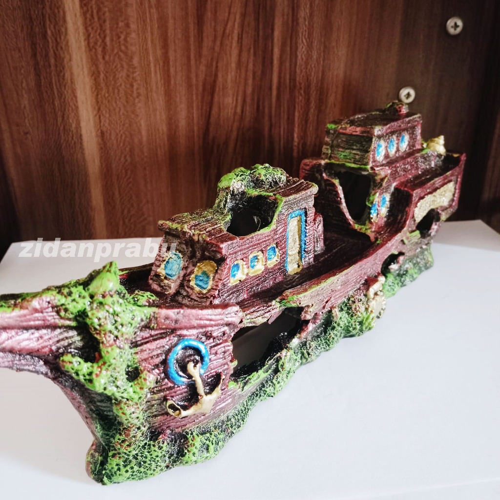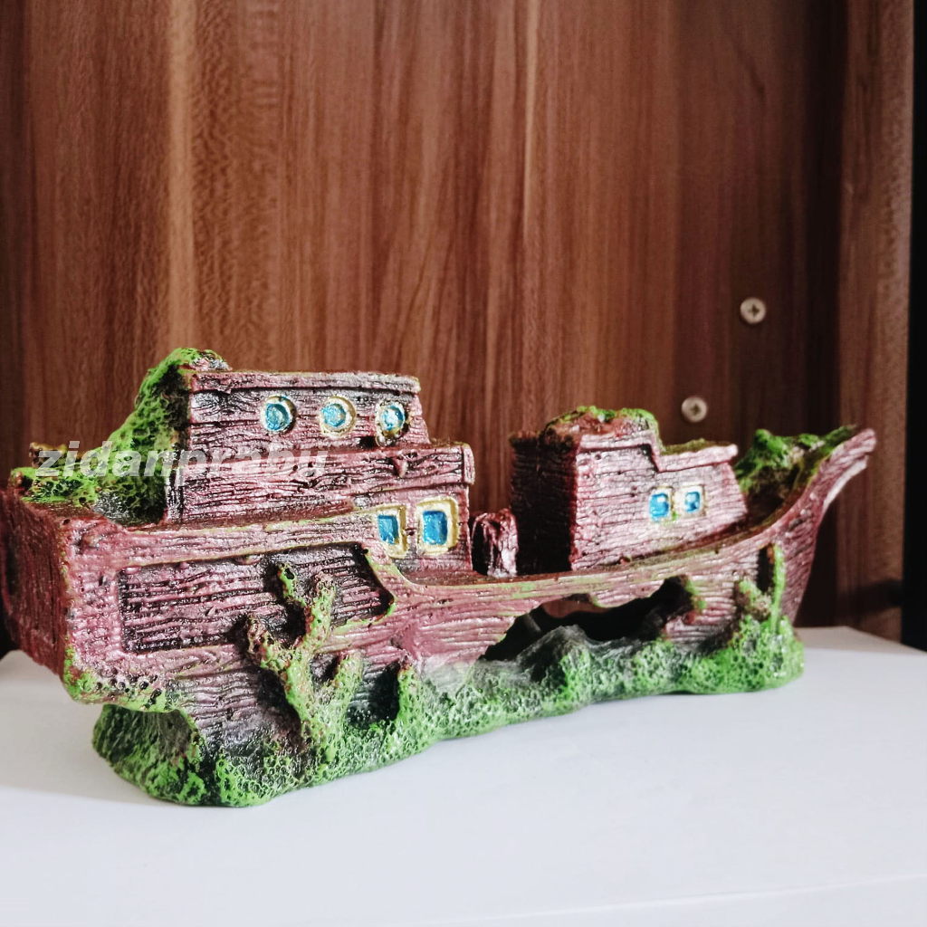 Hiasan Aquarium Fiber Kapal Panjang 29x7x11cm