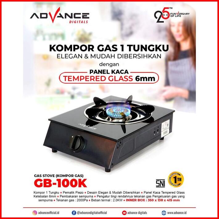 Advance Gb-100k Kompor Kaca 1 Tungku Tebal Kaca 6 Mm Anti Karat Dan Tahan Panas Garansi 1 Tahun