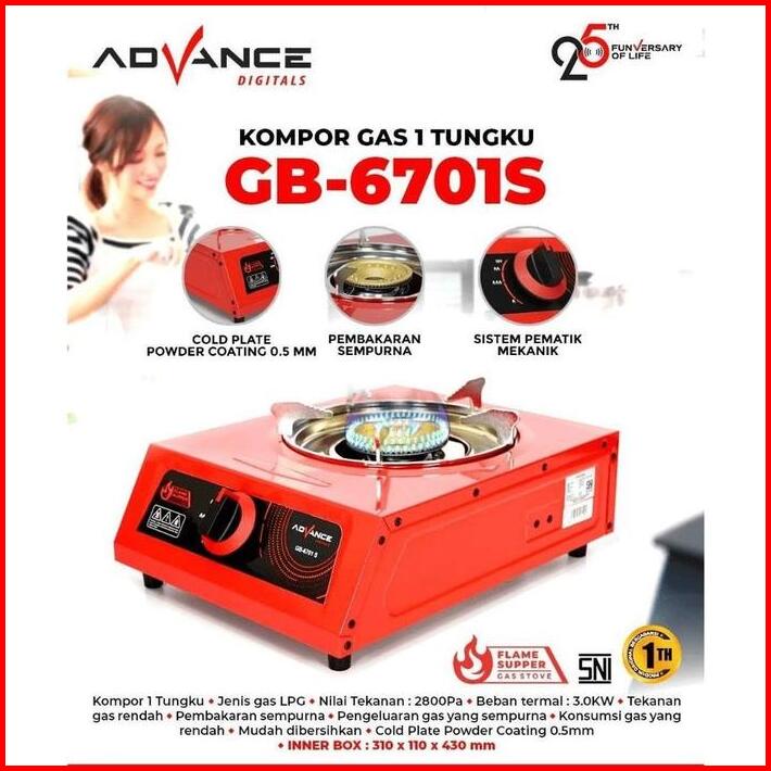 Advance Gb-6701s Kompor 1 Tungku Pematic Magnetic Anti Karat Dan Tahan Panas Garansi 1 Tahun