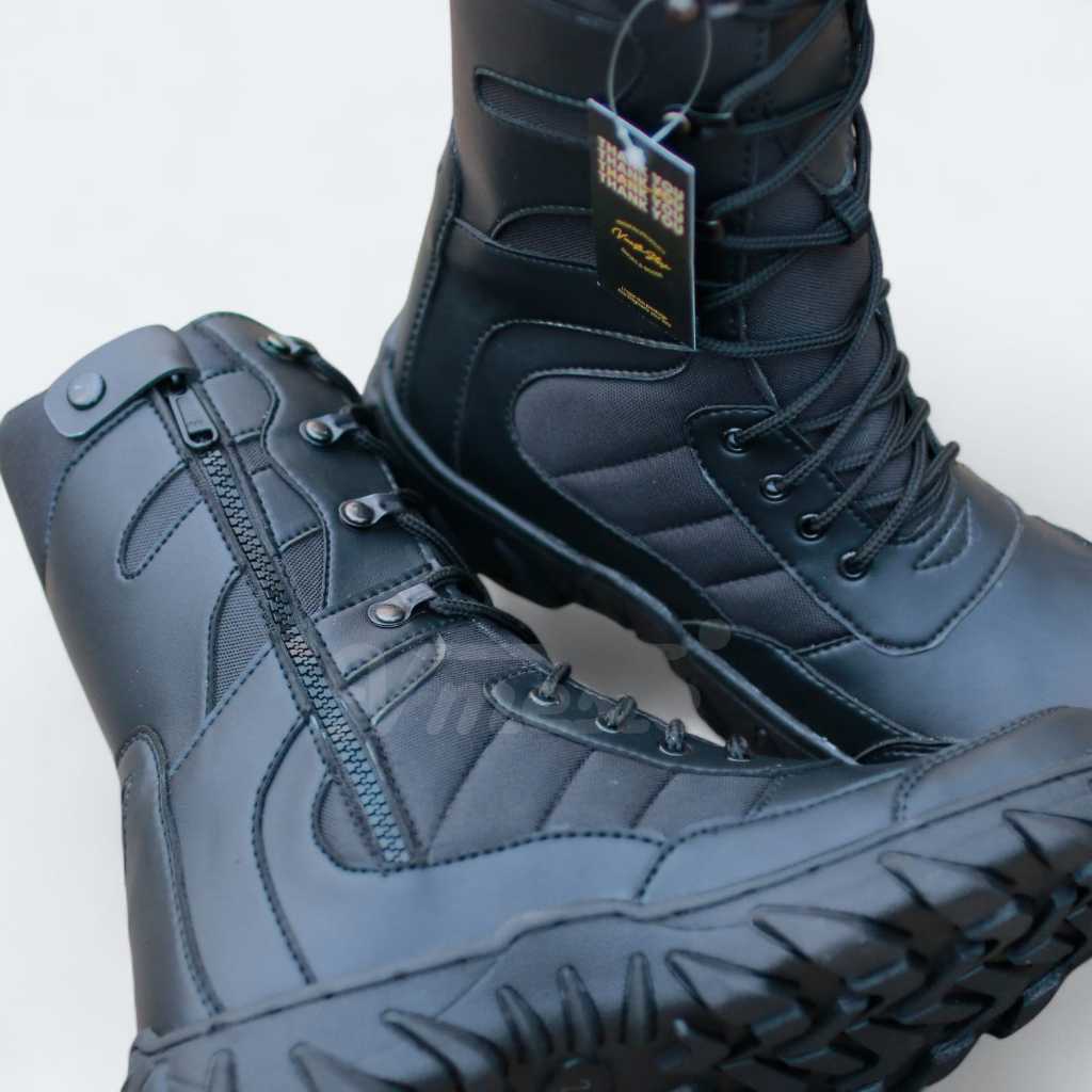 VMESTE - Sepatu PDL Predator TNI Polri Brimob Security Satpam Kulit Sintetis Hitam Doff Ujung Besi