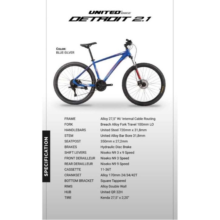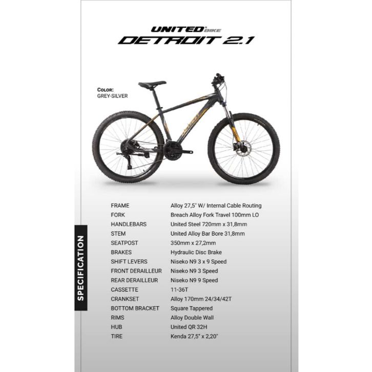 TERBARU [Sale] United Sepeda Gunung 27,5 DETROIT 2.1 Hydraulic - 3x9 speed - Disc Brake