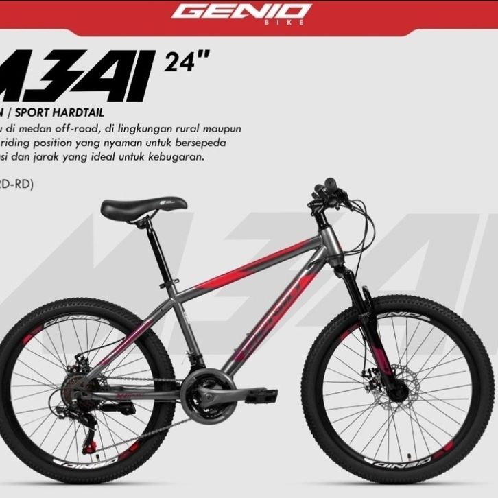 TERBARU Sepeda Gunung MTB 24 Inc Genio By United 24 Speed Rem Cakram Discbrake Dewasa Dan Remaja SNI