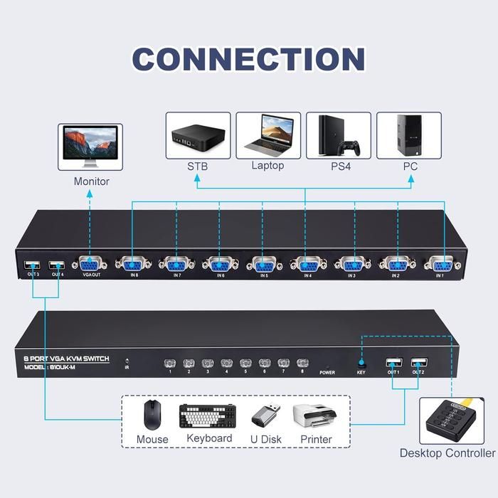 KVM Switch VGA USB 8 Port Sharing PC Laptop Monitor Keyboard Mouse