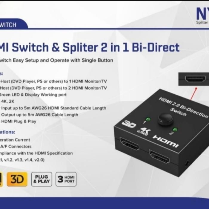 NYK HDMI SWITCH & SPLITTER 2 IN 1 BI-DIREC 2 PORT 4K 2K